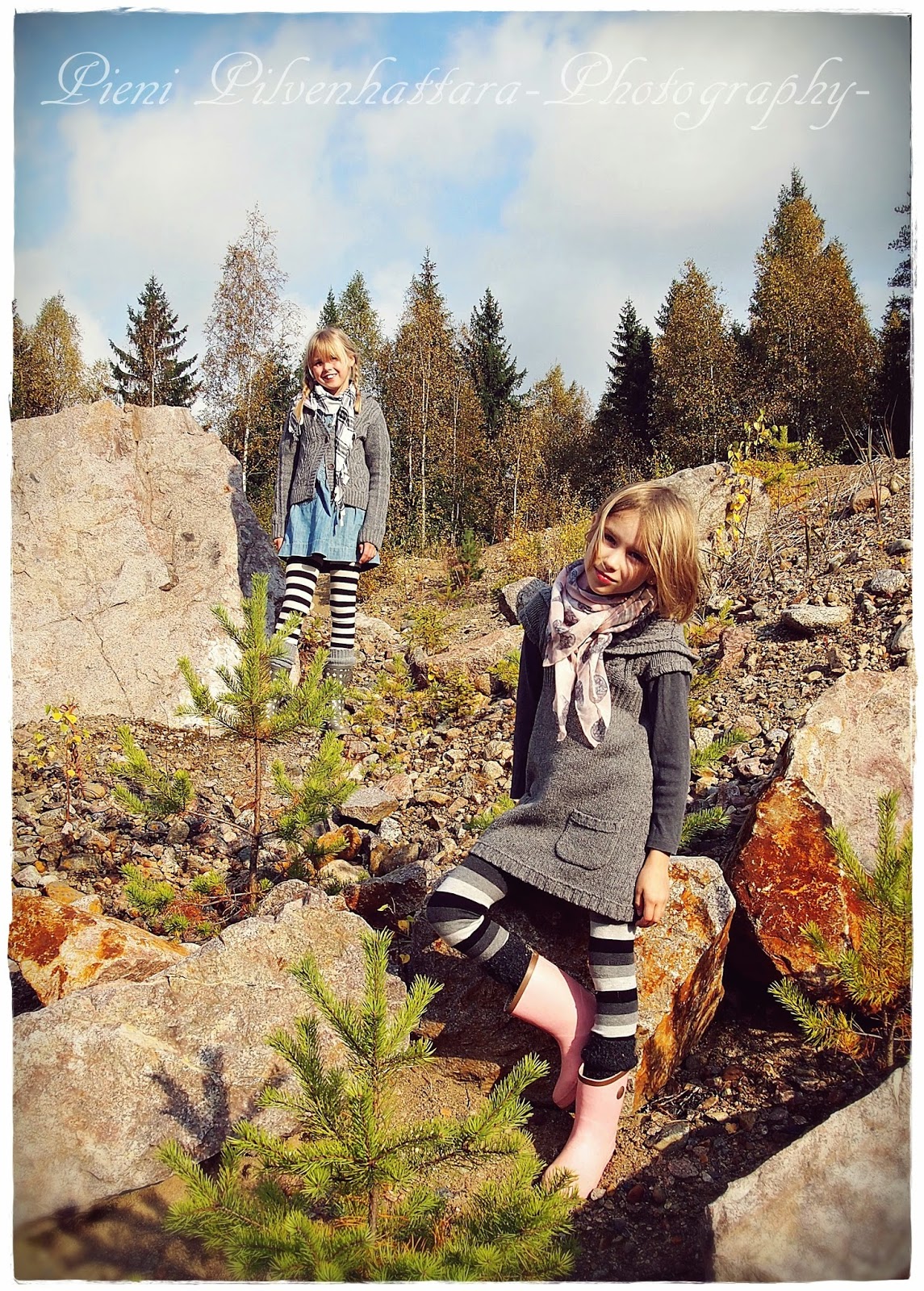 PoistaNämä kuvat on kyllä aina niin herttaisen ihanat, vaikka tytöt jo niin isoja ovatkin. Syksyinen tausta ja ihanat harmaat vaatteet lämpimine kaulahuiveineen tekee kuvista todella kauniit <3