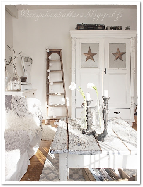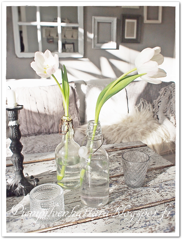 PoistaTikapuut ovat myös omat lempparini, mökiltä pelastetut. Pullot kirppislöytöjä :)