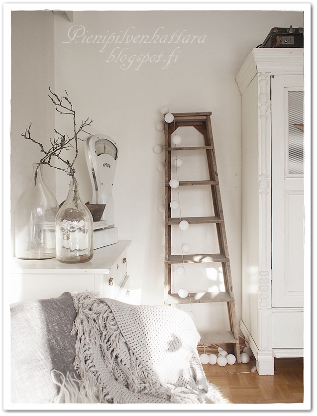 Auringonsäteitä sinullekkin! Nuo tikapuut ja isot lasipullot ovat niin kauniita :)