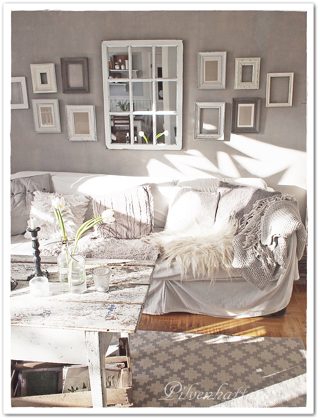 Kun potilas nukkui päivällä kuumettaan pois, järkkäilin samalla paikkoja ja yritin ikuistaa auringonsäteiden leikkiä olohuoneessa. Juuri tuota valoisuutta olen sisustukseen kaivannutkin,