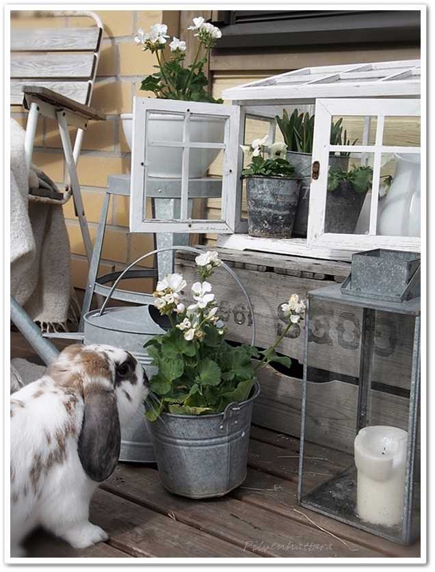 Olen hankkinut jo muutaman orvokin ja pelargonian terassin piristeeksi, mutta valppaana saa olla ettei joku pitkäkorvainen käy haukkaamassa maistiaisia!