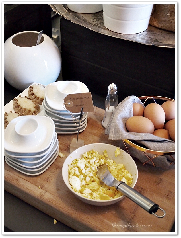 Kauniisti sisustetussa ja siistissä salissa nautiskelimme aamiaisen, jossa oli panostettu luomuun ja tuoreisiin raaka-aineisiin. Valikoima oli hieman suppeampi kuin suurissa hotelleissa ( saattoi toki johtua siitäkin, ettei vielä ollut sesonkiaika ) mutta maukasta oli ja vatsat saimme täyteen.